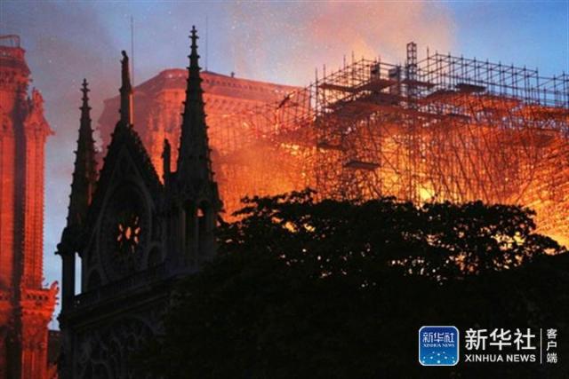 4月15日,在法国巴黎,巴黎圣母院燃起大火。(新华社记者高静摄)