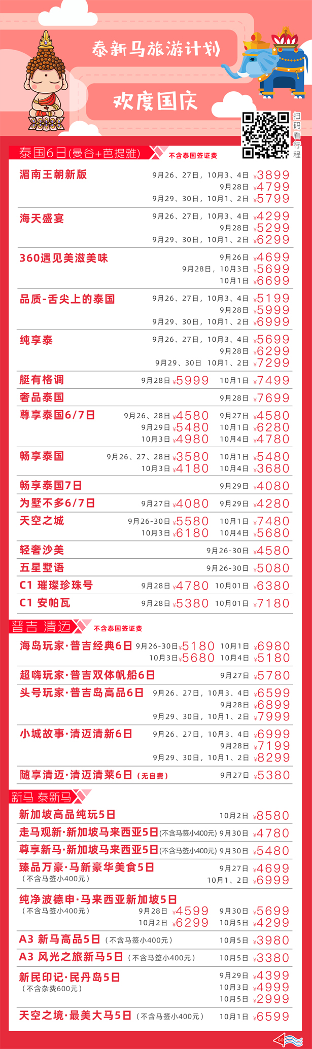 | 当前位置:首页 >> 动态信息 >> 行业动态信息 >> 2019年10月国庆厦门到新加坡马亚西亚泰国旅游线路推荐 |
