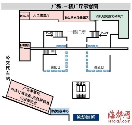 先别慌,福州火车站站前广场,几个进站口都有个地图牌,注明了候车厅、厕所、开水房、购票窗口、制证点的位置。找不到这个地图牌也没关系,本报把地图牌搬到了版面上。去火车站候车、接人,带份海都报去,换票喝水上厕所不求人。