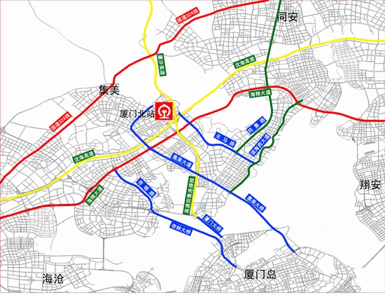 厦门北站进出岛路网示意图