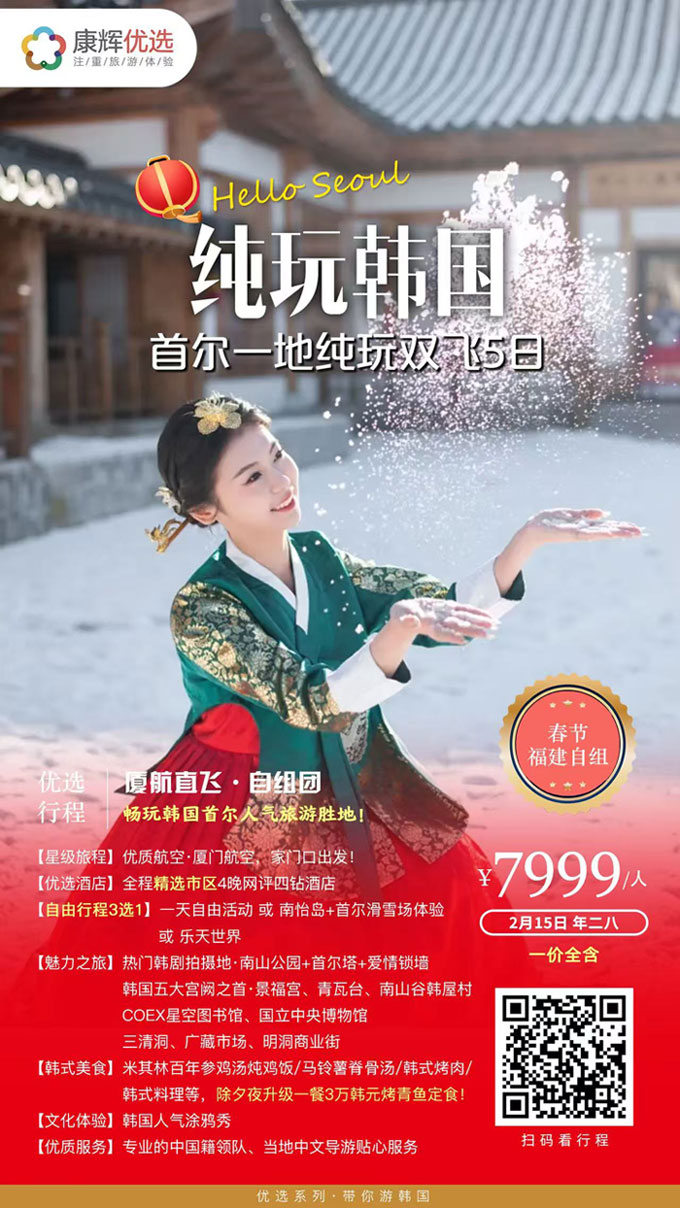 | 当前位置:首页 >> 动态信息 >> 行业动态信息 >> 2026年春节厦门出发韩国纯玩首尔一地5日游 |