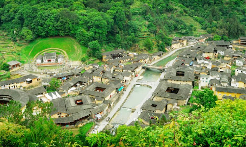 11: 40抵达田螺坑土楼群:世界文化遗产、首批中国历史文化名村(方楼:步云楼,三圆楼:振昌楼、和昌楼、瑞云楼,椭圆形土楼一文昌楼)坐观光车抵达下板参观“东歪西斜“----裕昌楼。参观塔下村:高山水乡、首批中国景观村落,纯朴的民风,犹如漫步在“世外桃源“之中……张氏家庙---德远堂