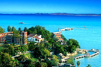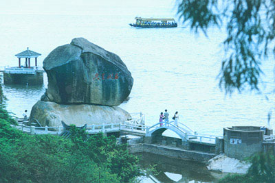 招凉亭,面对大海,凉风习习,且亭子造型如折扇,更有招凉之意。