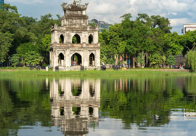 游览【还剑湖】,自由漫步还剑湖,还剑湖位于河内旧城的中心区,被称为河内第一风景区,这里汇聚着中越法三国的文化气息,中国的汉字,越南的奥黛,法式的咖啡馆和面包,相映成趣,近距离接触越南街区文化,更贴越南地气;走在街上,林荫大道两旁有着许多带有百叶窗和瓦顶的砖质建筑,仿佛向世人讲述着这个城市的历史。在美丽的还剑湖旁和狭窄的古街上,经常可以看到当地的特色交通工具-人力三轮车。随后可以乘坐河内特色人力【三轮车】(费用自理)(0.5小时);观赏沿途的风景,乘坐着这种人力三轮车慢悠悠地游览河内古街是您认识河内的最佳方式。