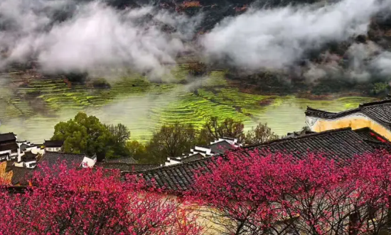 早餐后车至中国最美的乡村【鲜花小镇·晒秋人家·篁岭】(车程约1.2小时,温馨提示:赠送篁岭门票,不用不退;缆车自理:旺季3月6日-4月7日165元/人,平季130元/人;另此景点门票任何证件无优惠,敬请谅解!)篁岭因【梯田花海】【晒秋】闻名遐迩,【天街】似玉带将经典古建串接,徽式商铺林立,前店后坊,仿佛一幅流动的缩写版“清明上河图”。乘上高空索道,俯瞰独特的晒秋奇观。【百米高空玻璃栈道】惊险又刺激,索桥全长298米,垂直高度98米,中间段铺设48米玻璃栈道。独特的旅游体验带您走进【卧云桥】【垒心桥】篁岭景区精彩看点:【晒秋人家】【天街古巷】【五桂香堂】【奇异怪屋】【古树群】【梯田花海】【爱在心田】等,这里一定是你不容错过的婺源代表性美景。被评为"全球十大最美梯田",也是中国最美“童话里的乡村”;结束后乘车返黄山市区,晚酒店内休息或自由活动 。