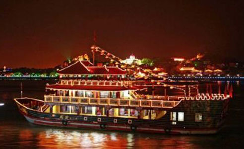 鹭江夜游游客能够在夜幕下欣赏到更加婉约的鼓浪屿,以及千变万化的鹭岛夜景。它将演武大桥、海沧大桥、杏林公铁大桥三点相连。闲暇之余游客可到船上一楼欣赏弹奏乐和吹萨斯表演、观看漳州木偶戏,演员们还会和观看者互动,观景品茶赏歌,十分惬意。