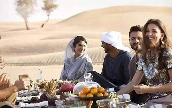 中午享用团体牛排餐下午自由活动,可自费参加冲沙活动。(乘坐 4WD 越野吉普画进行冒险家游戏-冲沙,欣赏沙漠落日,进入沙漠营帐观赏中东肚皮舞与中东美女共舞。享用的阿拉伯烧烤晚餐,穿阿拉伯民族服饰拍照,品尝阿拉伯特色的水烟,绘制阿拉伯民族手绘。)