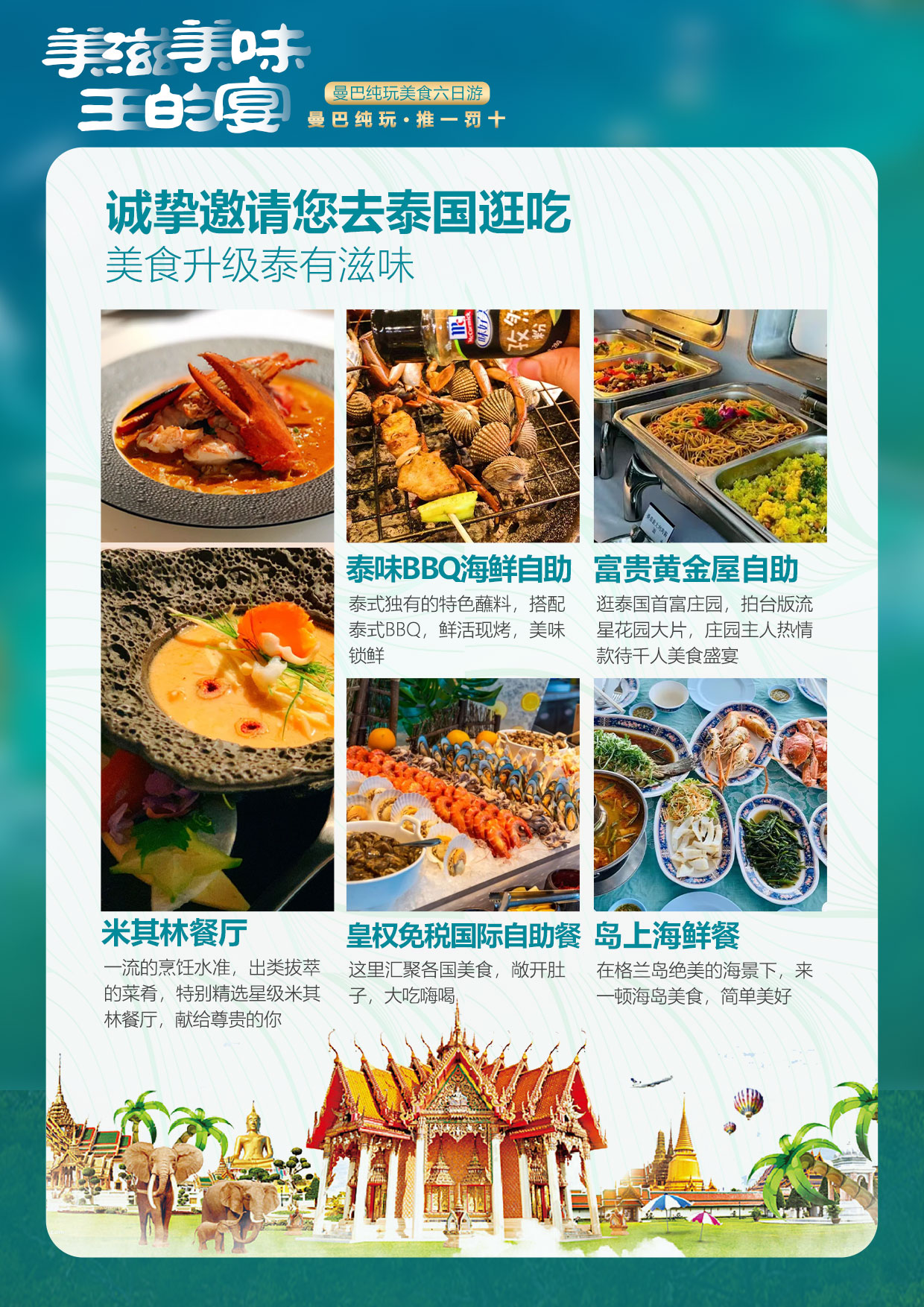 用餐:早餐:酒店内自助餐; 午餐:拉玛雅娜自助餐; 晚餐:男模餐厅或猛男夜市自理
