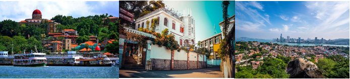 由厦鼓码头搭乘轮渡前往海上花园,美丽五大城区之首——鼓浪屿。鼓浪屿最鼎盛时期,从小路经过,几乎可以听到每家每户传出的钢琴弹奏声音,因而鼓浪屿又有「海上钢琴之岛」的盛名。