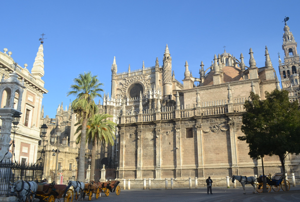 【塞维利亚大教堂】外观(游览不少于15分钟),世界文化遗产,世界三大教堂之一,伊比利亚半岛规模居首位的大教堂。这里也是哥伦布的灵柩所在之地。