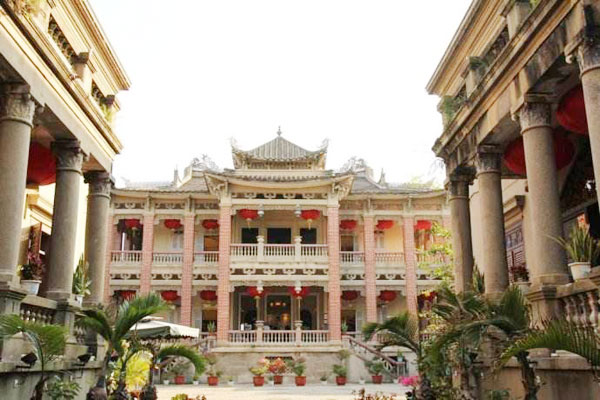 游览【海天堂构】位列鼓浪屿十大别墅之一,是鼓浪屿上唯一按照中轴线对称布局的别墅建筑群,由五幢别墅构成,是晋江旅菲华侨黄秀琅、黄念忆1921年所建。资料介绍:老别墅是中西方文化结合的典范之作,门楼是一派中国传统式样,重檐斗拱、垂柱花篮、飞檐翘角,石库门、双蹲狮古风盎然。建筑专家评价“是宫非宫胜似宫,亦殿非殿赛过殿;不中不洋不寻常,中西结合更耐看”,建筑风格在鼓浪屿也是独一无二的。