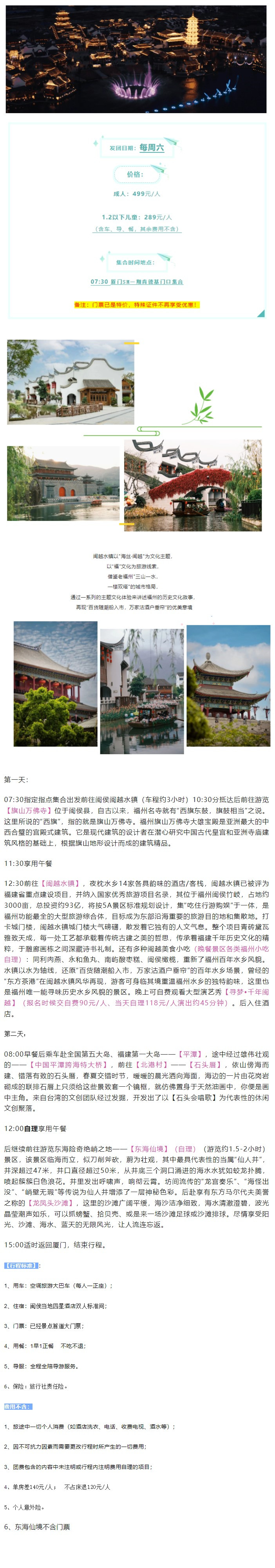 周边旅游 > 周边二日游 > 【厦门周边】厦门到福州闽越水镇、旗山万佛寺、平潭北港村汽车2日游