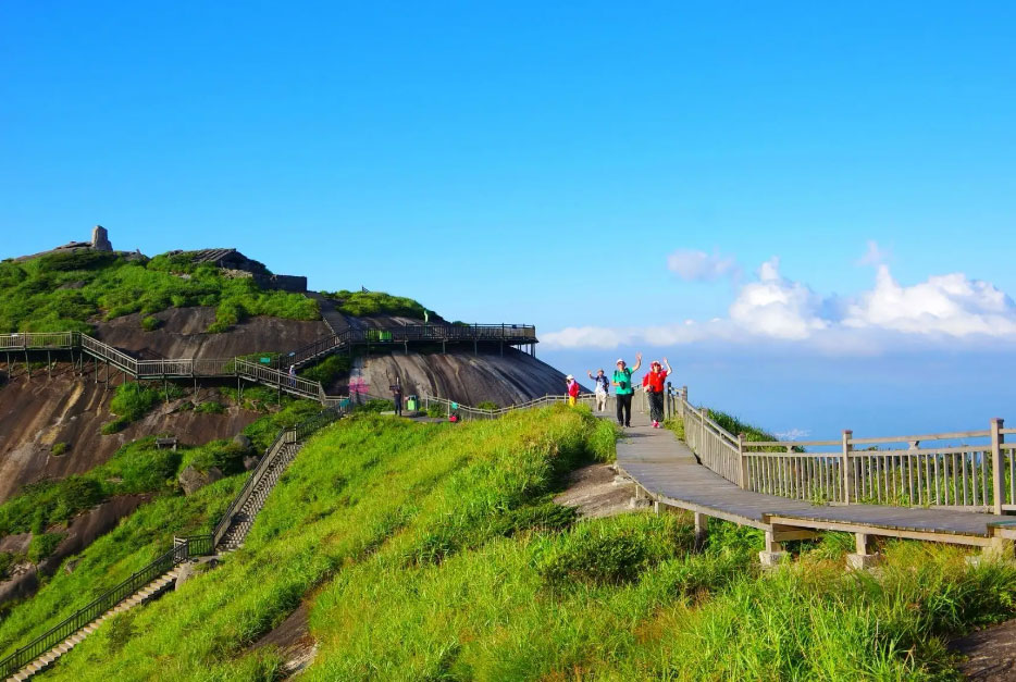 第二天 游览景点 金铙山 含早、中 餐 7:00叫早07:30用早餐。 08:00游览【建宁金铙山】,金铙山以“奇、绝、秀、幽”著称。白石顶上看日出乃一大奇观。东方渐露鱼肚时,一轮红日喷薄而出,由桃红、桔红顷刻变成火红,跃出地平线,放射万道光茫,整个大地顿时沐浴在一片金华之中,洋洋大观,令人陶醉。观云海秀色,千顷云浪在脚下涌动,如万马奔腾,蚊龙嬉戏,碧纱披垂,瞬息多变,使人恍若置身于琼楼仙境。幽深之处在金铙山南端的石燕岩、仙人池和白云峰。石燕岩嶙峋险峻、峭壁挺立、岩洞敞然,洞壁保存着清乾隆年代的摩崖石刻。而仙人池是山顶上天然形成的椭圆形平底石池,莹莹玉液,终年不涸。白云峰秀色则更令人倾倒,只见峰岩嗟峨,悬崖欲坠,造形各异,万态毕陈。这三大景点构成了山、水、岩。洞齐备的大景观。探胜寻幽者络绎不绝。 4、5月的金铙山,连片的杜鹃花争奇斗艳,绚烂花海形成一幅气势恢宏的画卷,在崇山峻岭间绵延百里,蔚为壮观。一簇簇、一团团、一片片、 一层层,红的如火,粉的似霞,染遍山头,美不胜收。金铙山的杜鹃花种类多样,主要有映山红、鹿角杜鹃、云锦杜鹃等,这些杜鹃属于天然原生林,种群面积大,各色杜鹃花竞相绽放,形成一条美丽的彩带,巍峨的金铙山仿若“腰系彩虹”。每年的这个时节,观赏漫山遍野的高山杜鹃花成为金铙山景区生态游的一张靓丽名片。 12:00享用午餐。 适时结束行程,返回温馨的家。 以上为参考行程,如有景点时间前后顺序调整,以当天导游安排为准,以上为散拼路线,会有等待情况出现,敬请各位游客谅解。