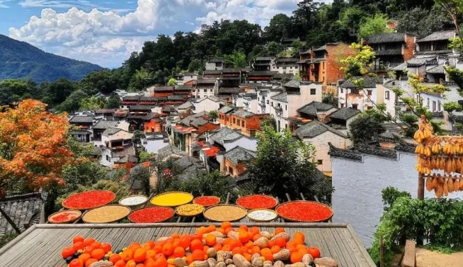 早餐后乘车前往中国最美乡村--婺源,游览【梯云人家•梦幻田园、“挂在坡上山村” —篁岭】(索道自理:平日130元/人)(游览时间约2.5小时):乘观光索道上山,游览以“晒秋”闻名的婺源篁岭民俗景区,被誉为中国最美符号,周边梯田覆叠白云环绕。春季千亩梯田油菜花,漫山遍野的新绿、嫩黄,震撼视觉冲击。【天街】民居围绕水口呈扇形梯状错落排布,U形村落带您体验南方的“布达拉宫”。徽式商铺林立,前店后坊,一幅流动的缩写版“清明上河图”。家家户户屋顶晒盘云集,绘就出一幅“晒秋人家”风情画。【卧云桥、垒心桥】索桥似玉带将两岸的梯田串接,体验百米高空玻璃栈道。俯看脚下梯田油菜花,感受未有过的油菜花。在观景台上你可以拿出相机拍下美景,走进梯田油菜花感受人在花海中的神话。【百花谷】欣赏紫色花海薰衣草、三角梅、玫瑰、孔雀草花、紫薇花等美景,近距离欣赏花海世界,形成“窗衔篁岭千叶匾,门聚梯田万亩花”的美景。驿道文化为主题打造,在天然氧吧的田园中享受“乡村慢生活”的惬意。