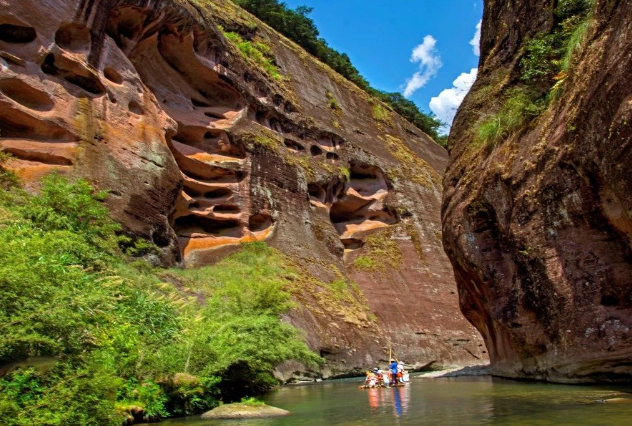 午餐后游览【寨下大峡谷,63元/人,游览约2小时】金龙谷深邃幽长,壁立千仞,赤壁倒悬,危崖劲露,丹崖斑斓,奇险峻秀。谷内植物茂密,环境清幽,修竹生机盎然,藤萝攀岩附树,置身峡谷之中,恍若世外桃源,堪称“丹霞洞穴博物馆”景区位于泰宁世界自然遗产的核心区,处在水源、生态优良,峡谷密集的自然资源中。