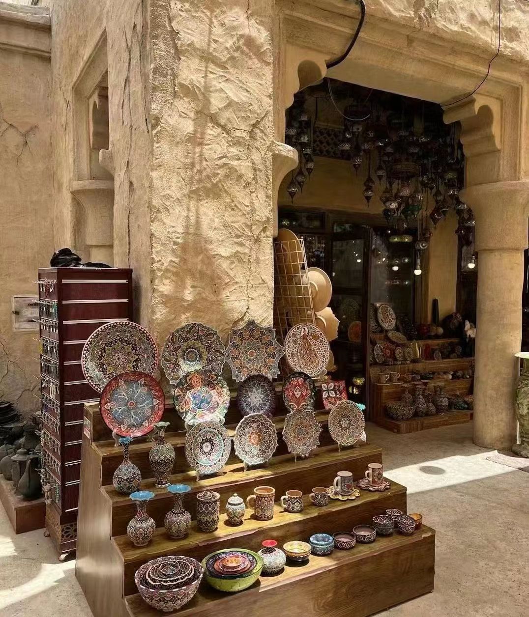 Ø 参观伊朗小镇(约45分钟),以传统的沙漠色房屋、风塔、房屋间狭长的小巷而闻名。穿梭在小城中,里面还有很多艺术馆、画廊,静静地沉浸在艺术的氛围中。可进入中东地区最大的一家咖啡博物馆,这里陈列着由第一次世界大战的弹头融化制成的咖啡研磨器、还有也门、埃及和埃塞俄比亚出土的咖啡壶文物。同时还有一本18世纪德国详细描述咖啡的著作
