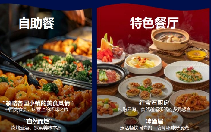 阳光透过窗帘的缝隙,温柔地拂过脸颊。新的一天在蓝梦之歌邮轮上悄然开启,在邮轮上充分享受各种娱乐设施;品尝邮轮上的各地的美食;邮轮上还为您提供了健身活动的场所,剧院演出,当然您还可以在港湾酒吧&星空酒吧前点上一杯特调鸡尾酒,随着音乐的节奏轻轻摇摆,让身心在音乐的海洋中尽情放松。