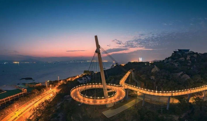 11:00 【山海步道•林海线•盼归塔】轻徒步•从天泉步道广场步行15分钟即可到达盼归塔。“盼归塔”拥有270°的高点观海大视角,在这看海非常的壮观,可以俯瞰鹭岛整片独特的南部海景。可远眺金门、双子塔、漳州港海景,近望环岛路,随处都可拍大片。