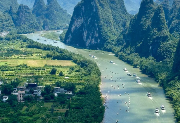 前往漓江码头乘【四星级豪华游船、正航】游览“百里画廊”—全景大漓江AAAAA级(船程约4小时船上中餐自助、豪华沙发座椅,高速wifi全船覆盖;360°全景观光甲板全船智能中央空调)欣赏漓江风光:九马画山、黄布倒影、兴平佳境、浪石烟雨、八仙过江等。