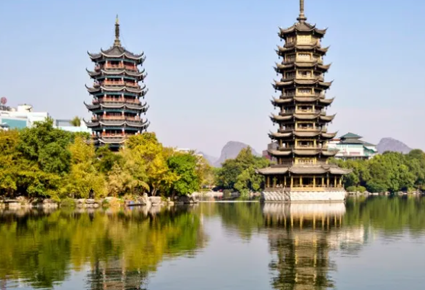 远观桂林文化新地标【日月双塔】(不上塔)、(整座铜塔创下了三项世界之最)。赴桂林市民超市购买当地土特产馈赠亲友。