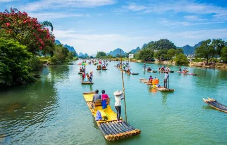 【竹筏游漓江】(草坪段)约60分钟 乘车前往漓江草坪码头,乘坐排筏游览【漓江】,漓江两岸群峰连绵,相映成趣,感受“分明看见青山顶,船在青山顶上行”的绝妙景致,让您在这如梦如幻的人间仙境中,体验到“桂林山水甲天下”诗句的由来。乘竹筏游览,与漓江水0距离接触,是体验漓江美景最好玩的游览方式。 【江景下午茶】约60分钟 坐在360°观景餐厅,阳光、闲暇、时光、安好、拍照打卡。悠然午后,一杯香茗,一块甜点,慵懒的阳光拥抱着自己,遥河相望美景、船只,岁月静好,不负流年。 【天空之境】约30分钟 阳光缓缓铺散开来,平静的水面,将天空拥入怀中,画面如此美丽,仿佛进入了一场梦境。在这里,水天相接,天地同相,空中行云转瞬流入平静的水中,阳朔的“天空之镜”,仿佛坠入人心底的瑰丽世界。 前往景点【西街】(自由活动,司机导游不陪同,独享自由时光)西街是阳朔最有历史的街道。西街始建于1674年,它东临漓江,直对东岭,西对膏泽峰,旁靠碧莲峰,宽约8米,长近800米的路面,用本地产的槟榔纹大理石铺成,暗青油亮,两旁是清代遗留的低矮砖瓦房,白粉墙红窗,透着岭南建筑的古朴典雅。